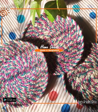 Made of 100% natural jute. The natural jute coasters are made by raw jute fiber. These are eco-friendly and biodegradable.