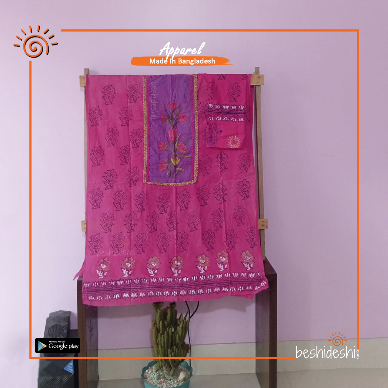 Full Body Block Printing, Hand Painting on The Chest, Lace & Hand Stitching Work, Sleeve Fabric is Separated