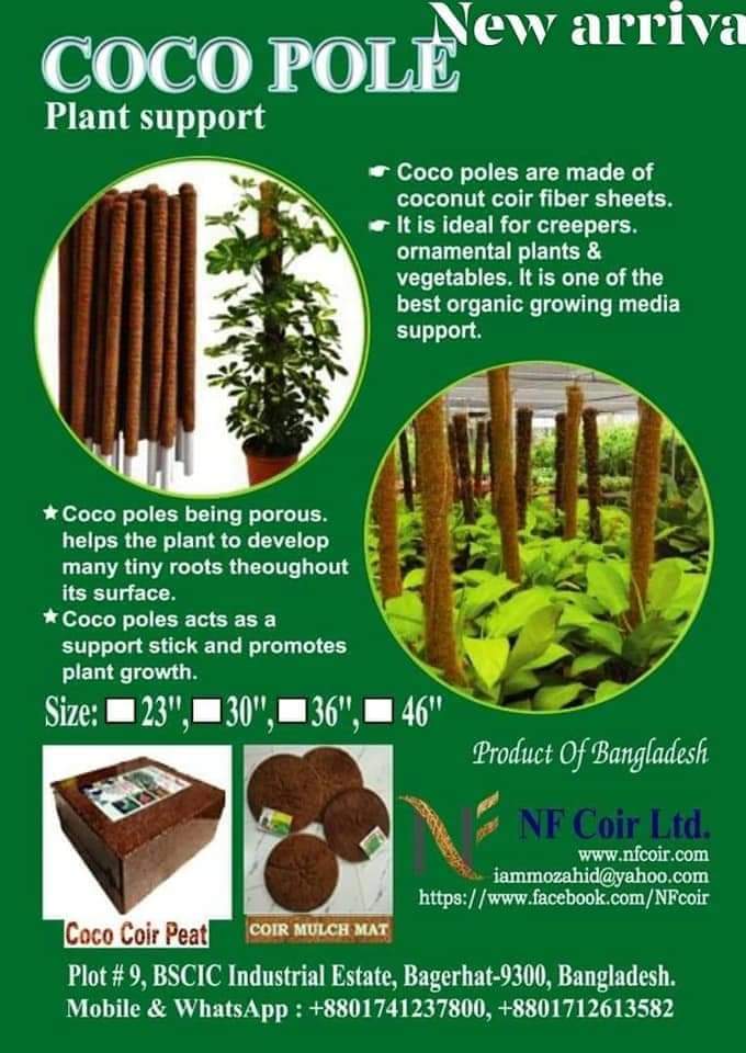 Coco poles are made out of specially treated coconut fiber that is rolled into poles for the support of vines, shrubs and any other plants that need a support to give them protection while they are growing. Coco poles are widely used in plant nurseries and horticulture farms. As well, they are ideal for supporting plants such as creepers or ornamental plants that are growing inside your home as décor on patios or in the garden.