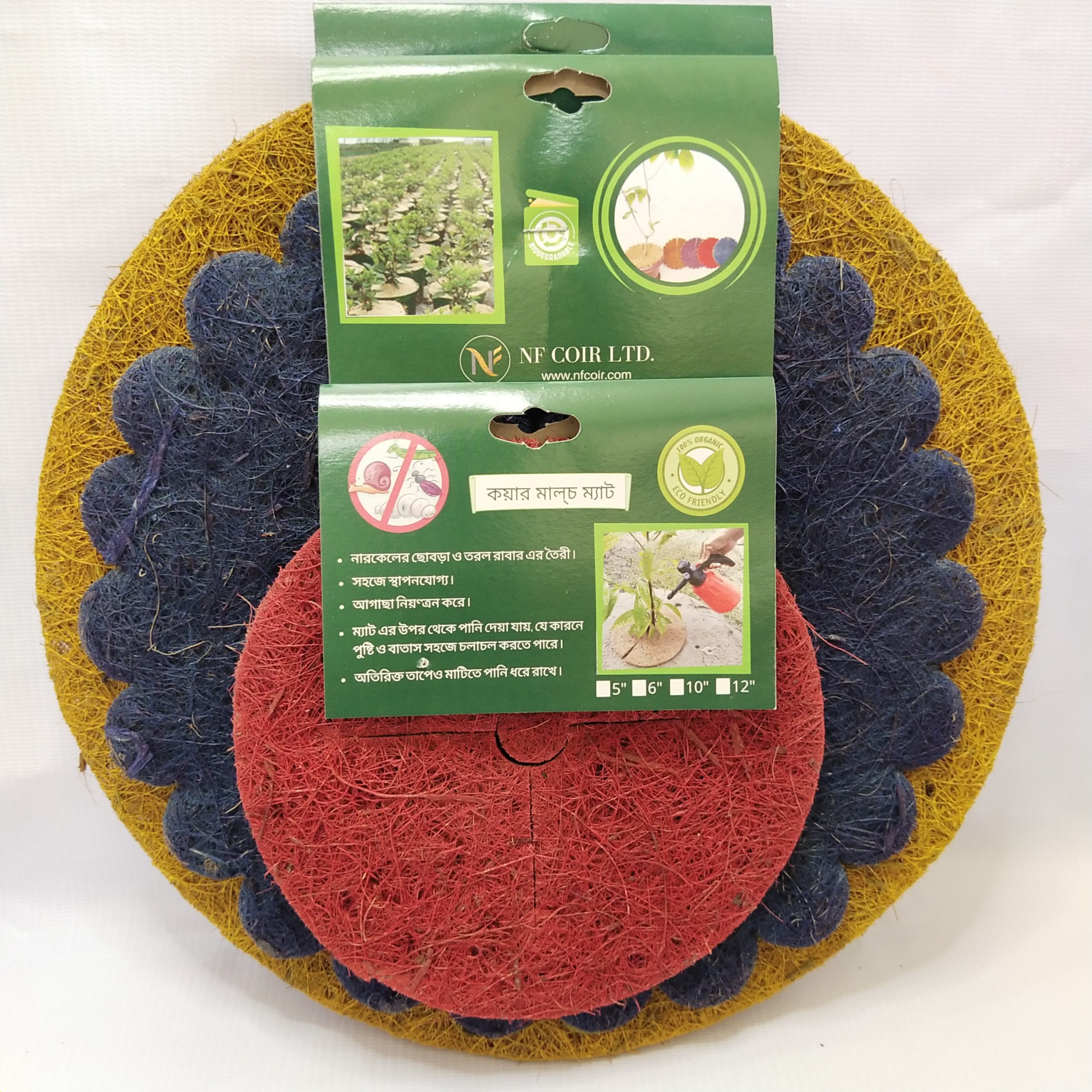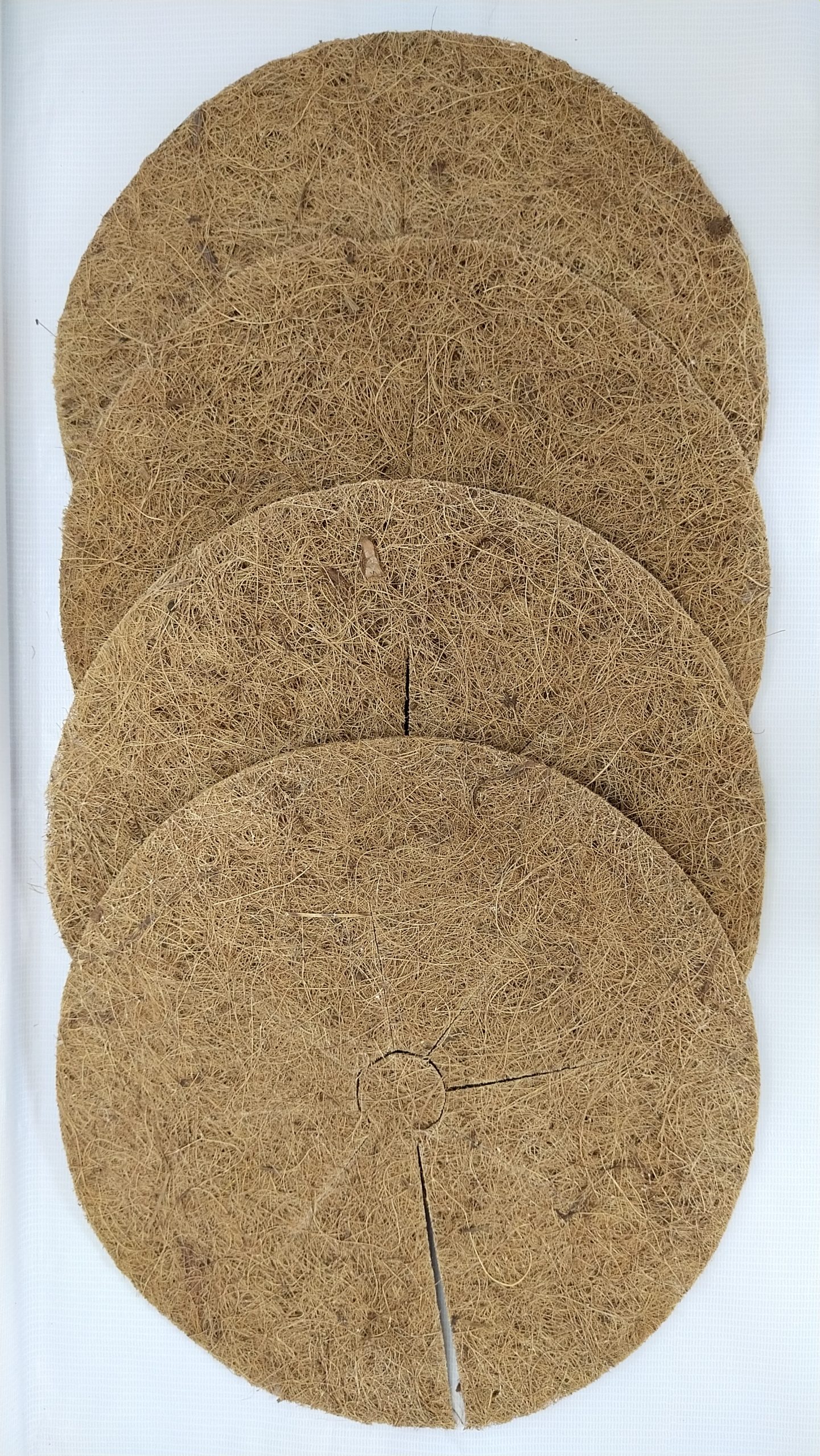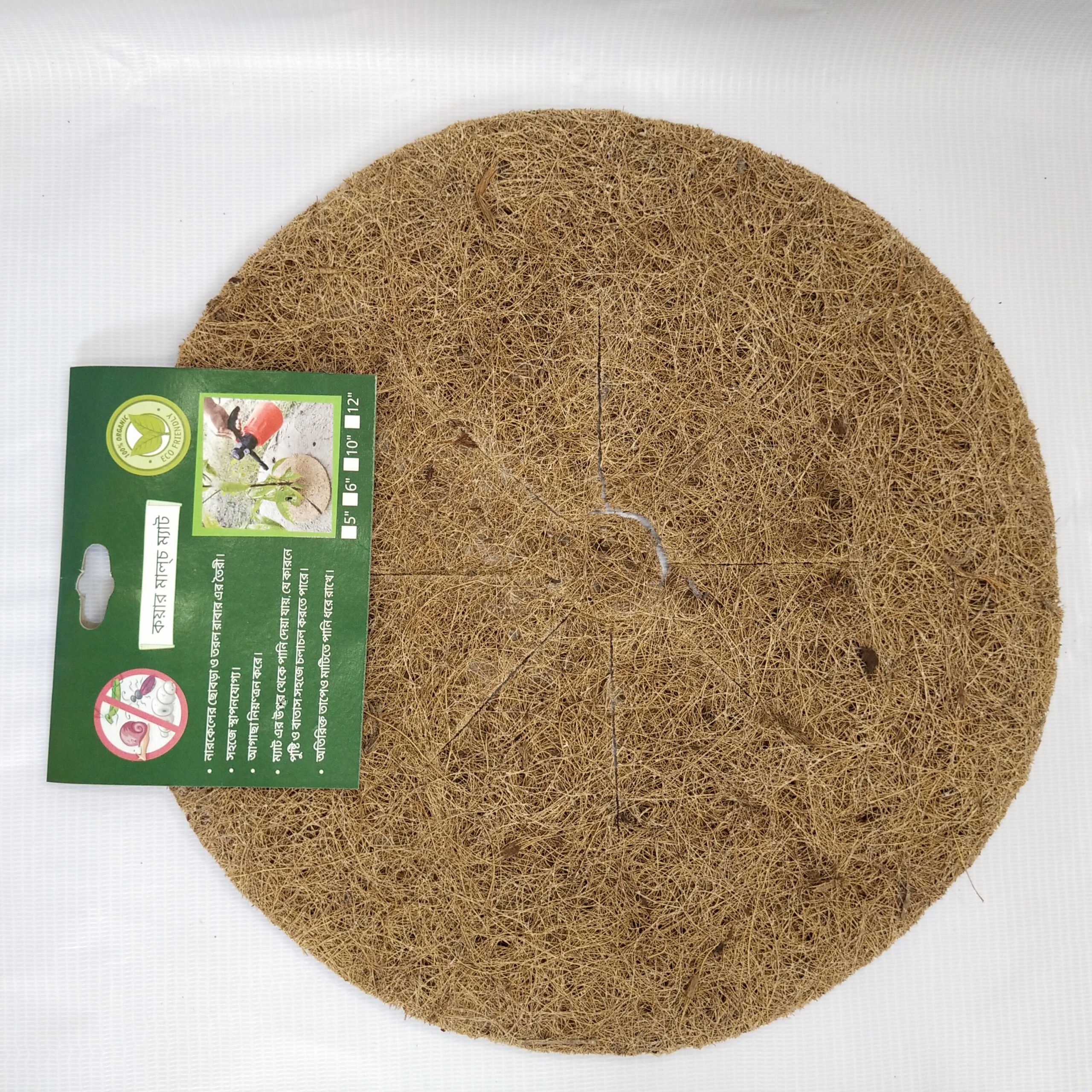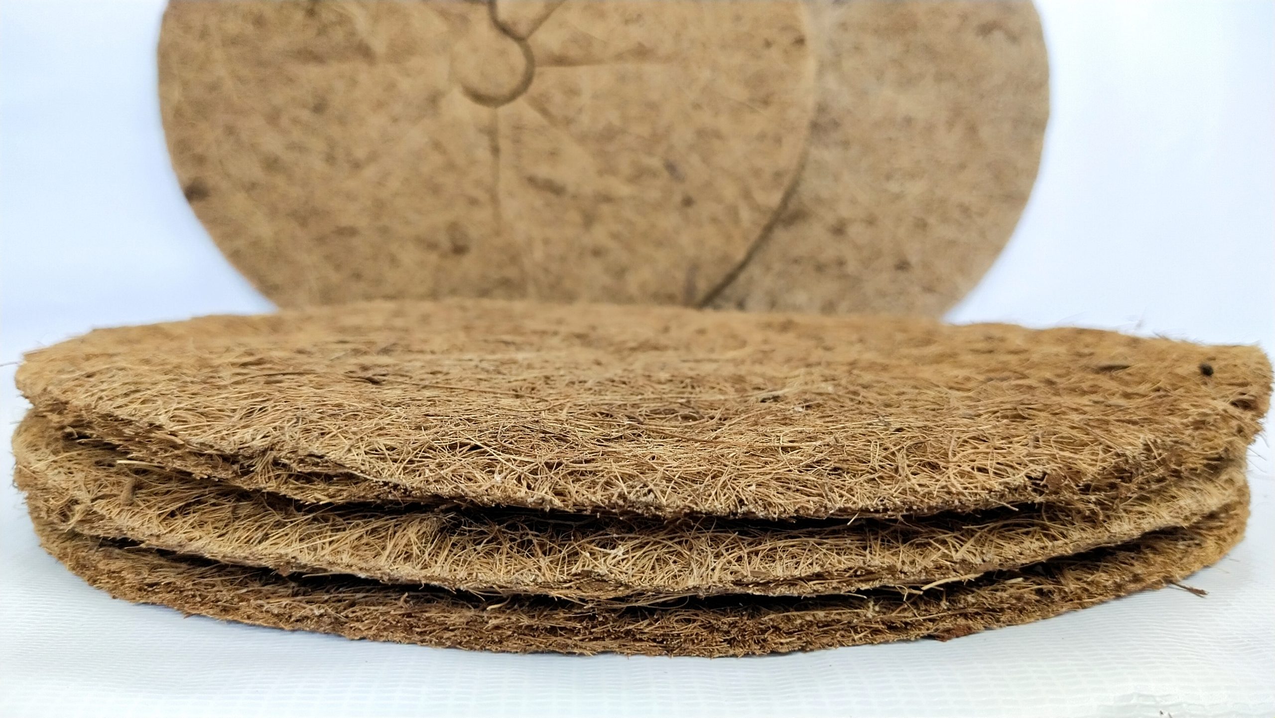 Coir Mulch Mats are non-woven fabric of coir fiber. Usually supplied in rolls, sheets or cut in disc shape for easy spreading around the plants in pots, we manufacture 800 GSM, one-side latex or without latex mulch mats.