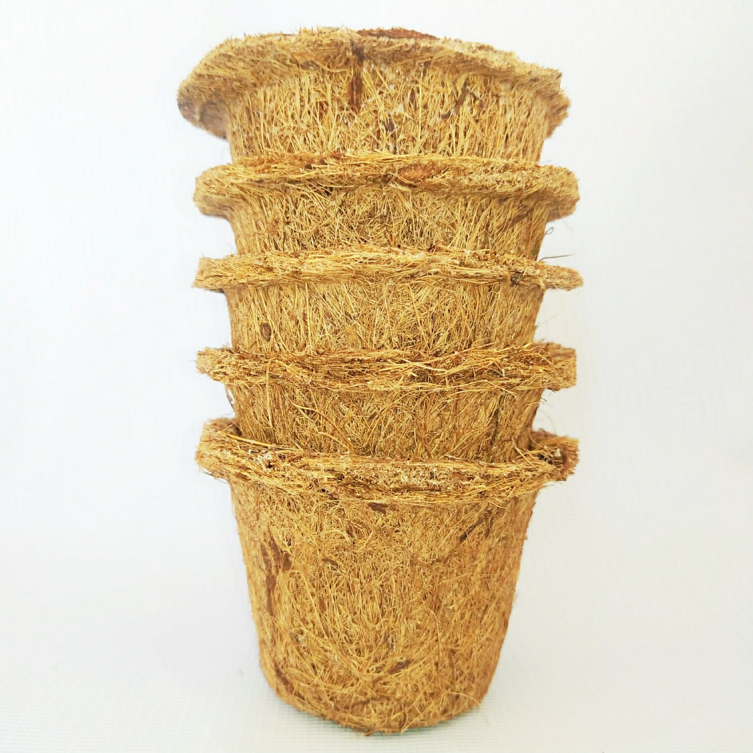 Coir pots are made out of coconut coir fiber bounded together by natural latex and molded to an attractive shape. The coir material allows air and water to move through the pot while containing soil, so the plants don’t have to pull from the pot at planting time.