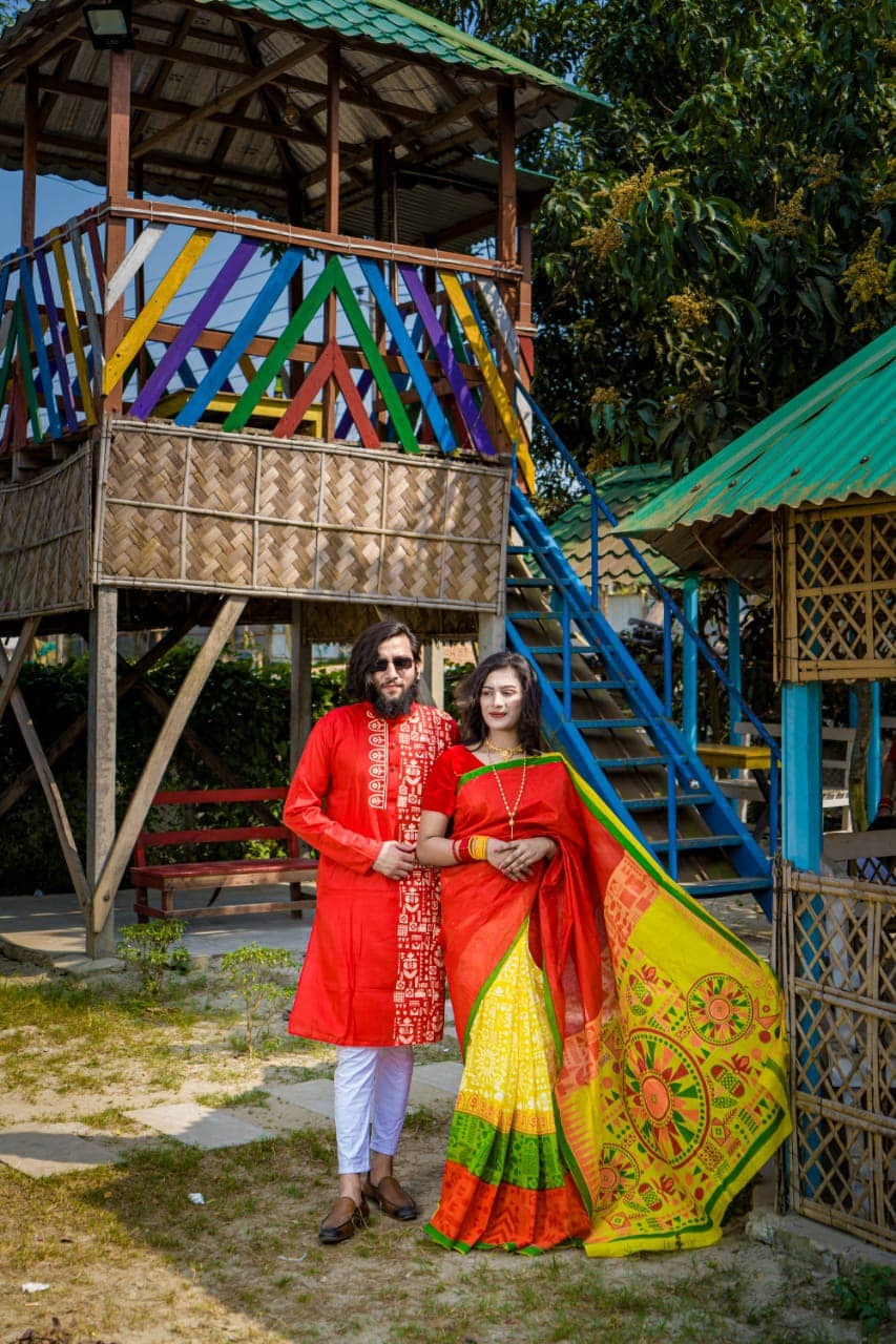 Saree : Dhupian Silk, Half Silk, Skin print and Block Print.