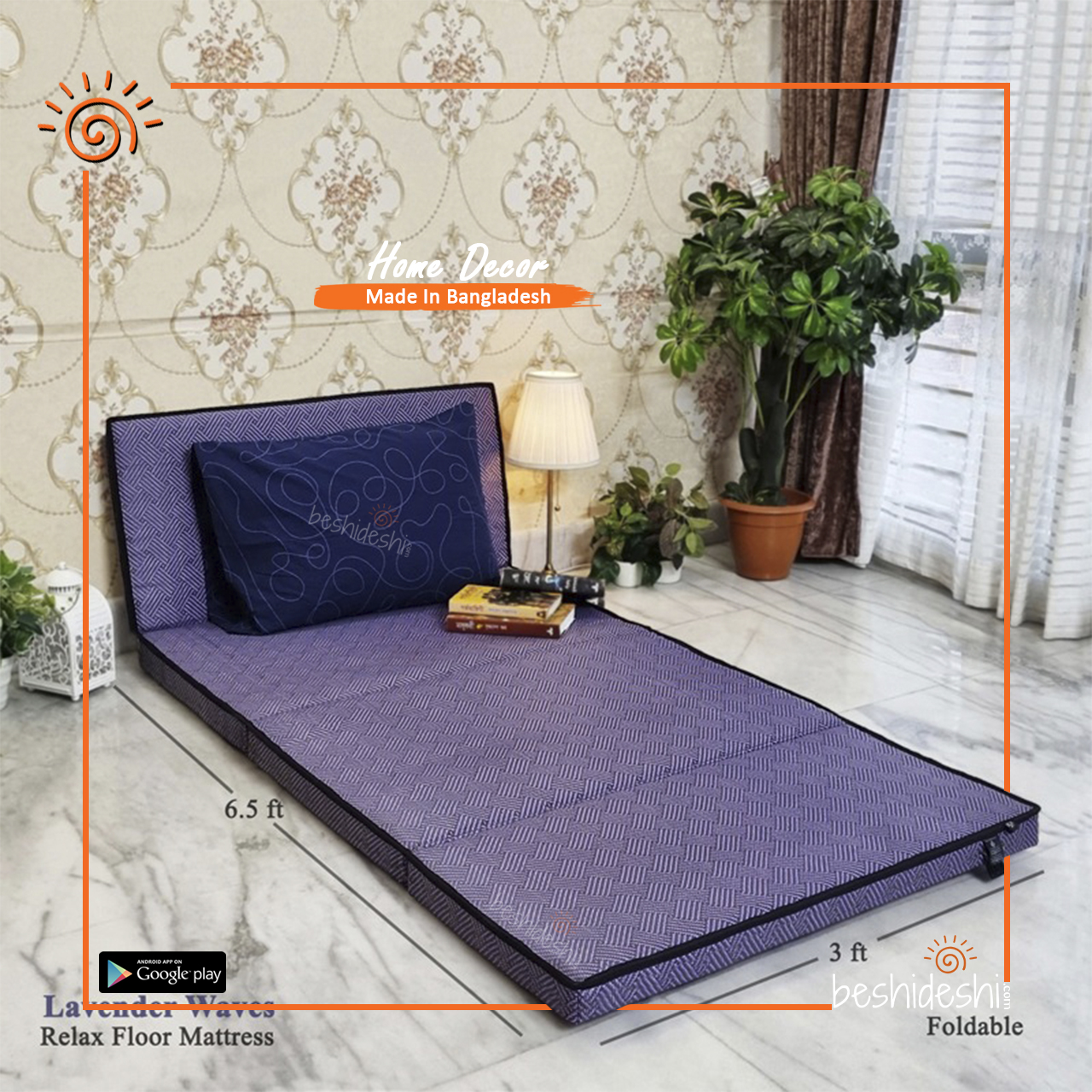Relax Floor Mattress are carefully designed focusing special situations when you need a temporary bed to sleep. These ready-to sleep floor mattresses are comfortable, light weight, fold able & easily portable. So you can make a bed only when you need one.