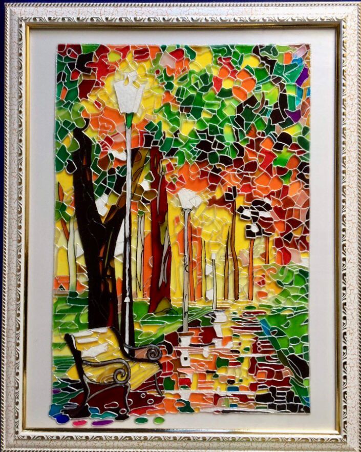 Frame, PBC board, out liner, Glass color, hand made glass painting