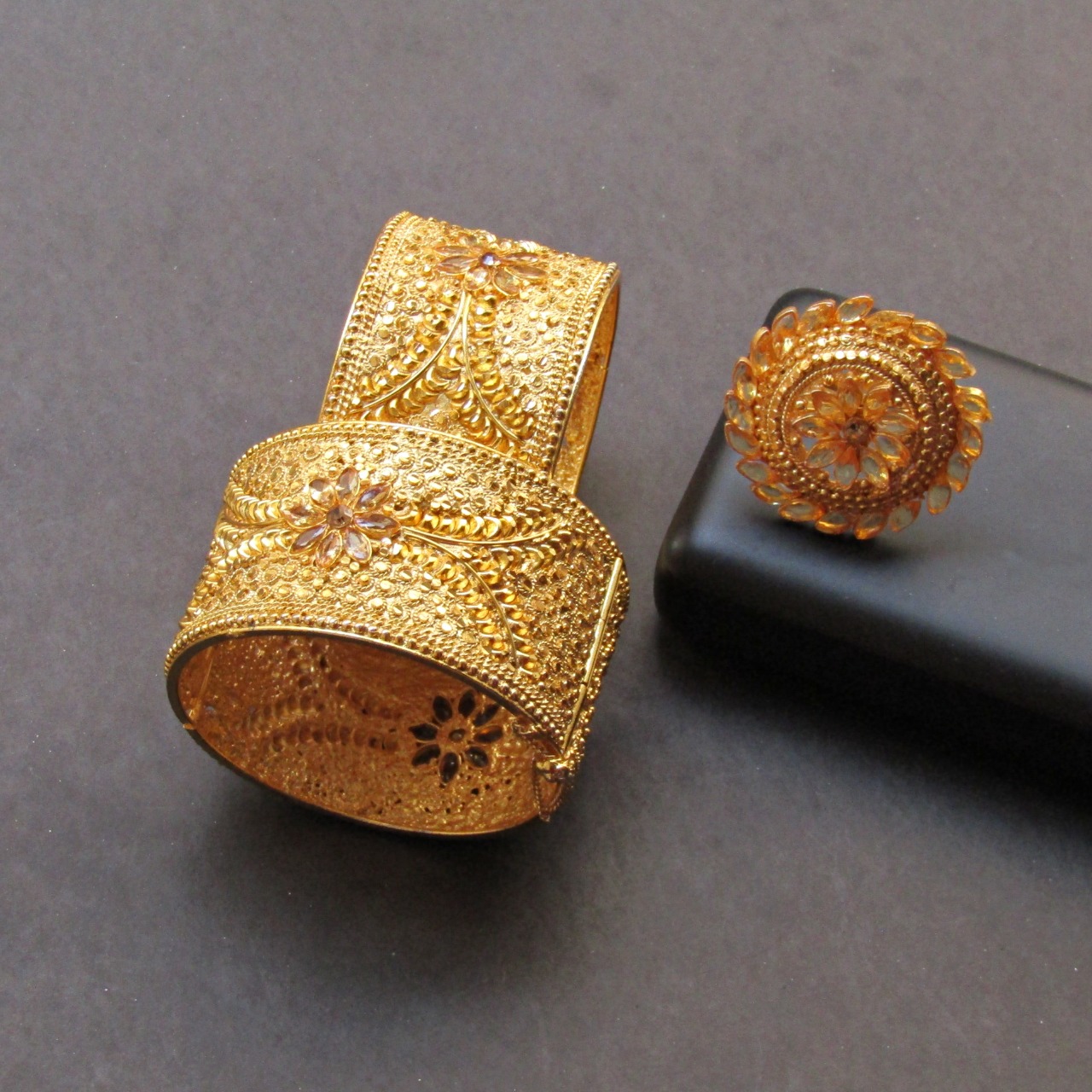 Gold Plated Jewelry Set 1pair Peak 1pcs Ring The color may vary slightly due to the difference in lighting and the camera settings Made in Bangladesh