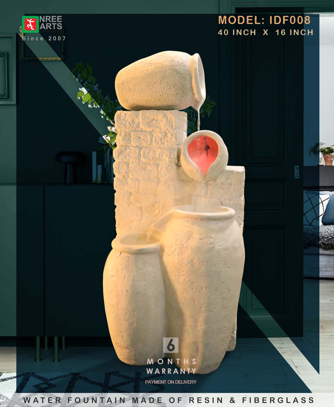 IDF008 is a design combination of four different sizes pots which are flowing water from one to another. It has a nice water tuning quality that can mesmerized you from the deep of your soul. And it’s antique gray color can enhance the level of your home’s glamour one step more.