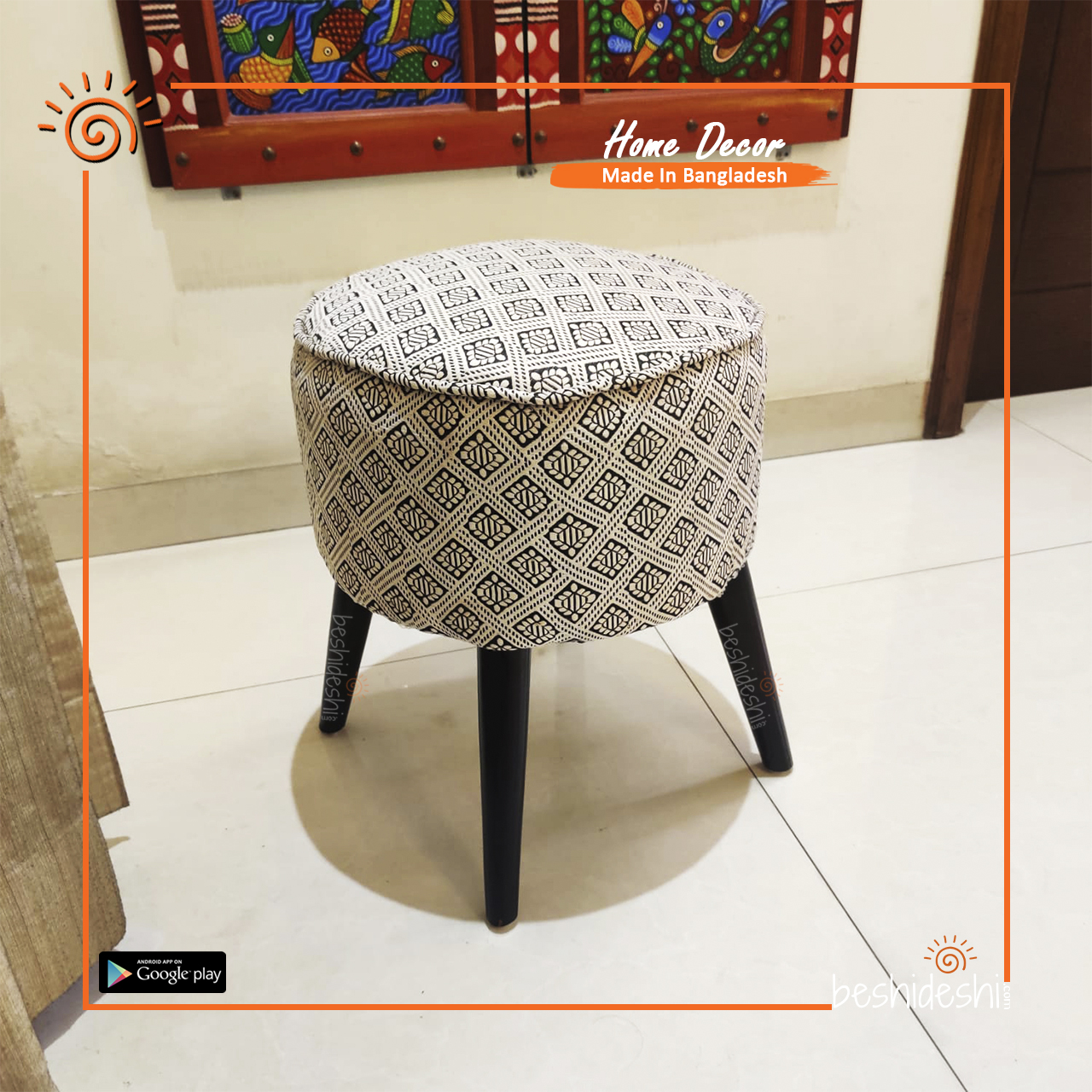 Jamdani Pattern On Printed Velvet Fabric Stool