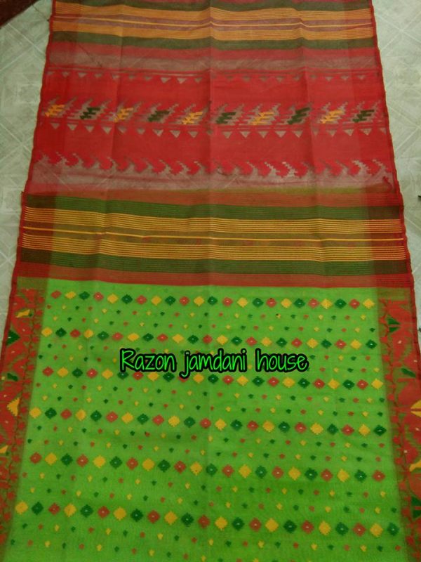 Jamdani is a hand loom woven fabric made of cotton, which historically was referred to as muslin. Jamdani weaving tradition is of Bengali origin. It is one of the most time and labor-intensive forms of hand loom weaving.