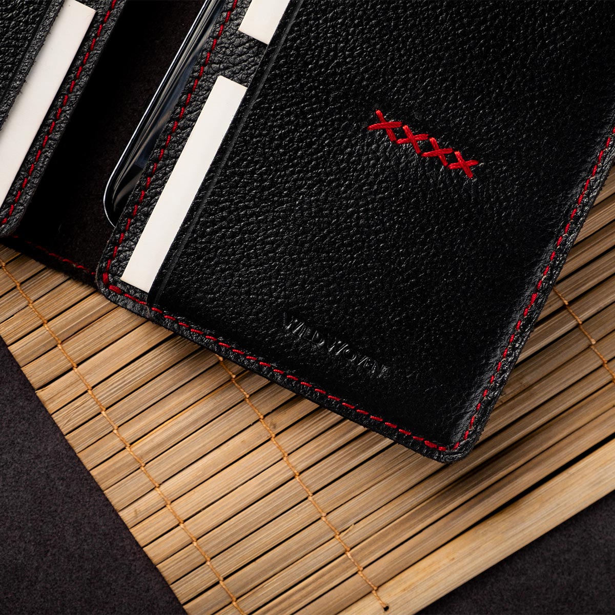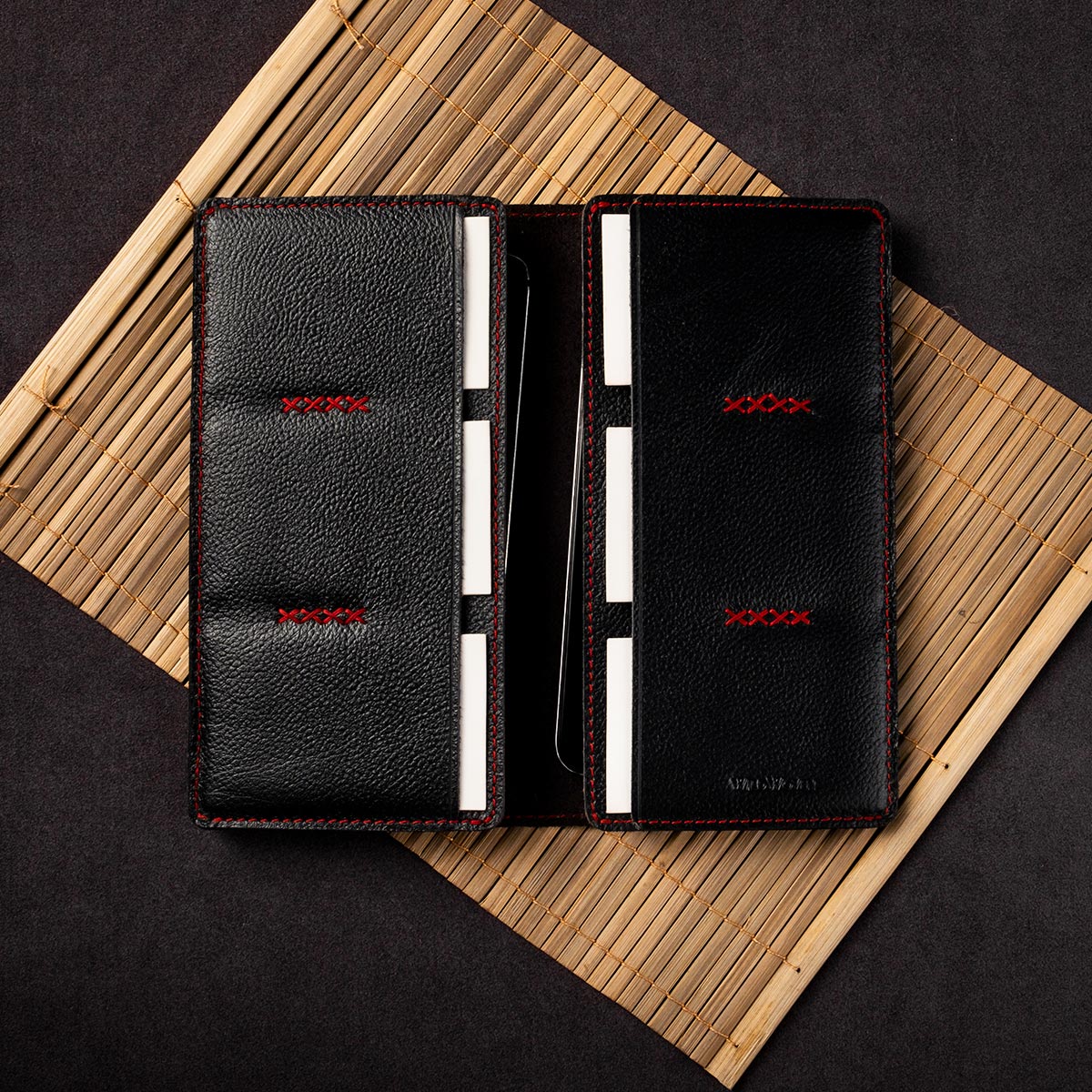 This minimal but elegantly designed handcrafted original leather wallet also features six separate card chambers to hold all your most important cards for the day.