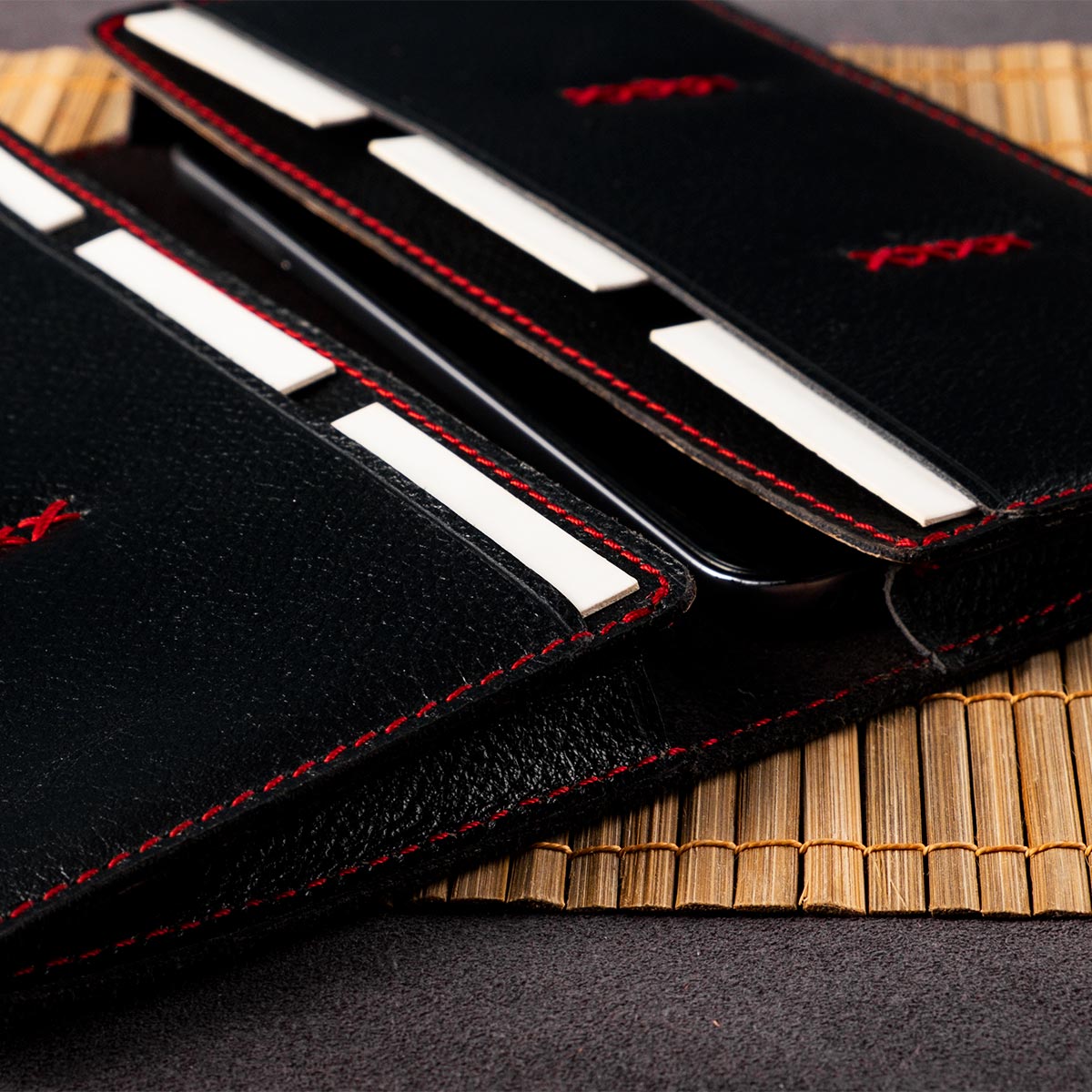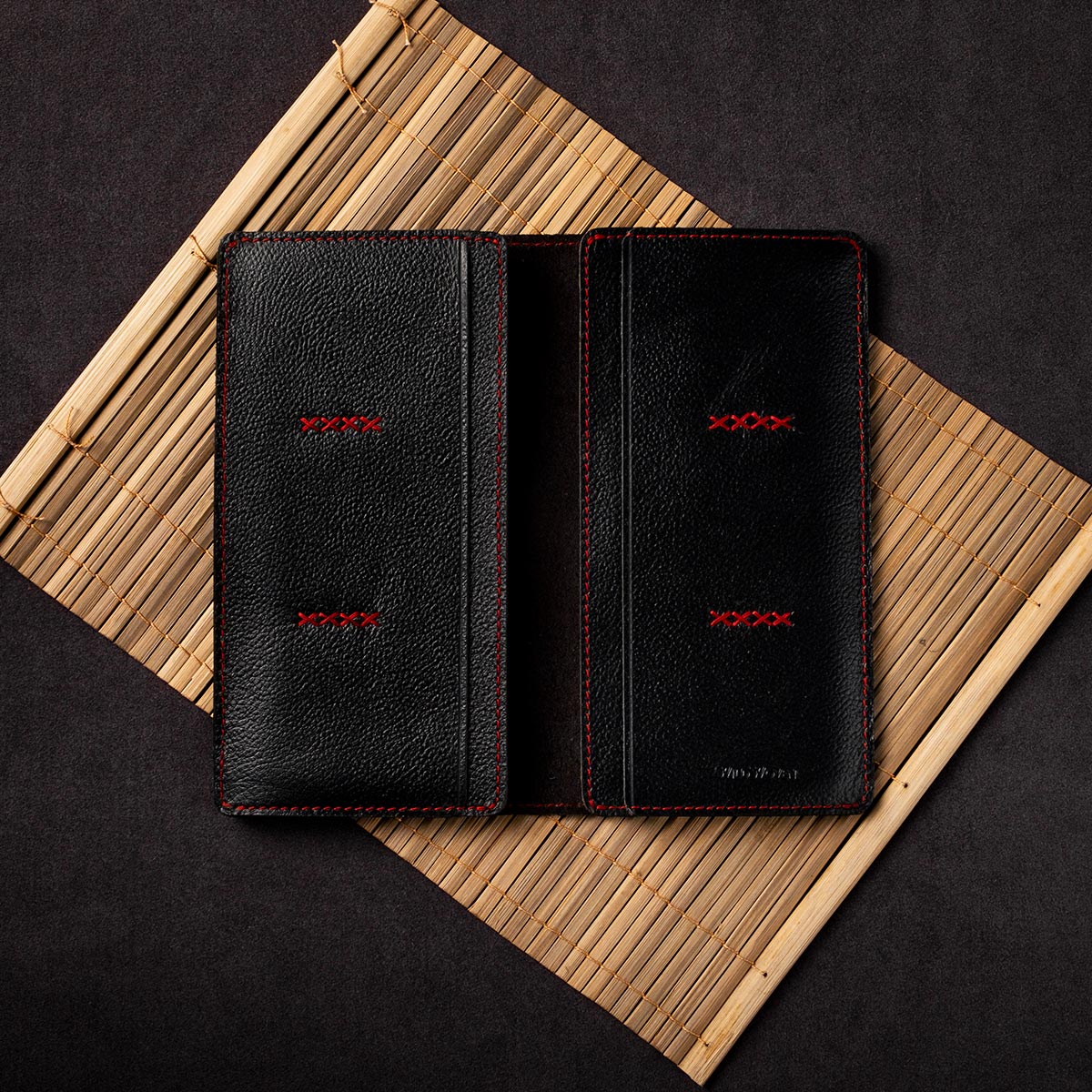 Description: Carry two mobile phones at once in the Long Wallet LW2 with ease and style. Both long chambers has expandable side parts to hold any mobile small or large with a perfect fit.
