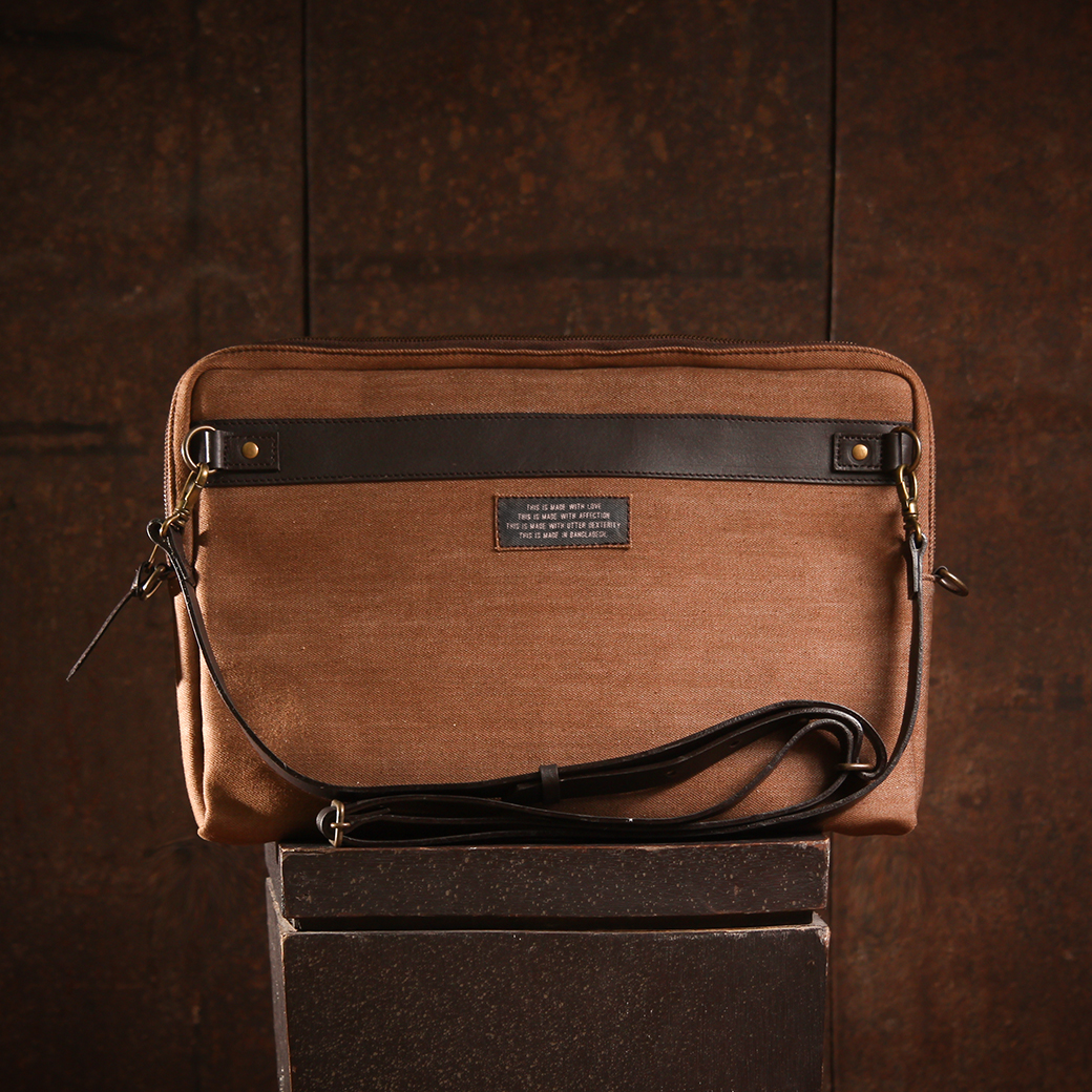 Tote around your tech essentials safely and in style with our distinctive laptop commute case in Sepia crafted in high-quality rugged denim for an iconic look. This zipped computer bag from Studio Series will ensure that your trusty laptop will be secure no matter where you go. And the smooth leather wrist holder with our embossed logo is just another added dimension for the perfect aesthetics.