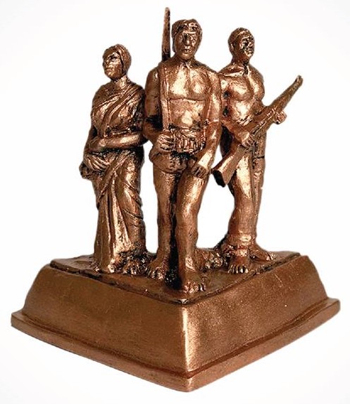 Aparajeyo Bangla (Bengali: অপরাজেয় বাংলা) is one of the most well known sculptures dedicated to the Bangladesh Liberation War in 1971. It is located in the campus of Dhaka University, just in front to the Faculty of Arts Building. In Bengali, the phrase means “Unvanquished Bengal”.