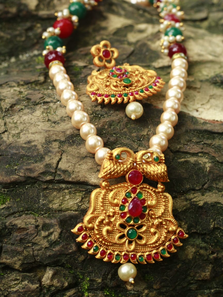 Materials: Gajra beads,Onyx beads,metal end cap,Matte gold set,artificial pearl beads…