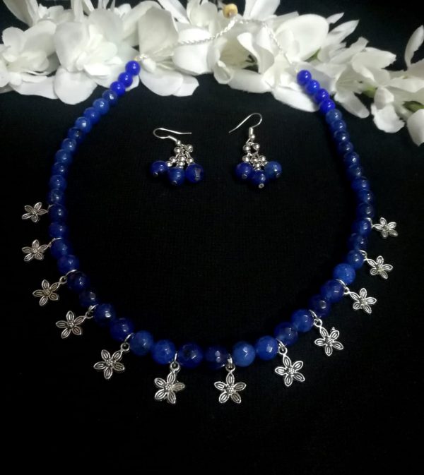নীল গারনেট স্টোন বিডস এর সাথে ফ্লাওয়ার চাম।