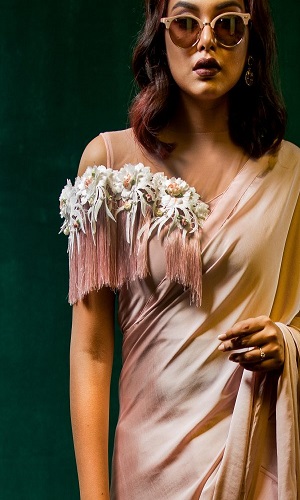 This elegant ready made Saree is from the exotic Sequin collection. This stunning Saree is in a trendy nude color shade and very easy to wear. Size: 36