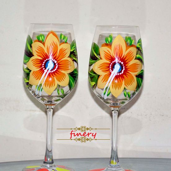 Colorful and beautiful hand painted Glass Set (6 pics)