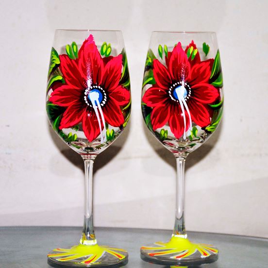 Colorful and beautiful hand painted Glass Set (6 pics)