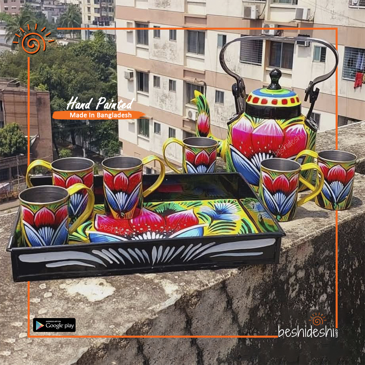 Material: Aluminum Kettle, Steel Cup & Tin Sheets Tray, Enamel Paint