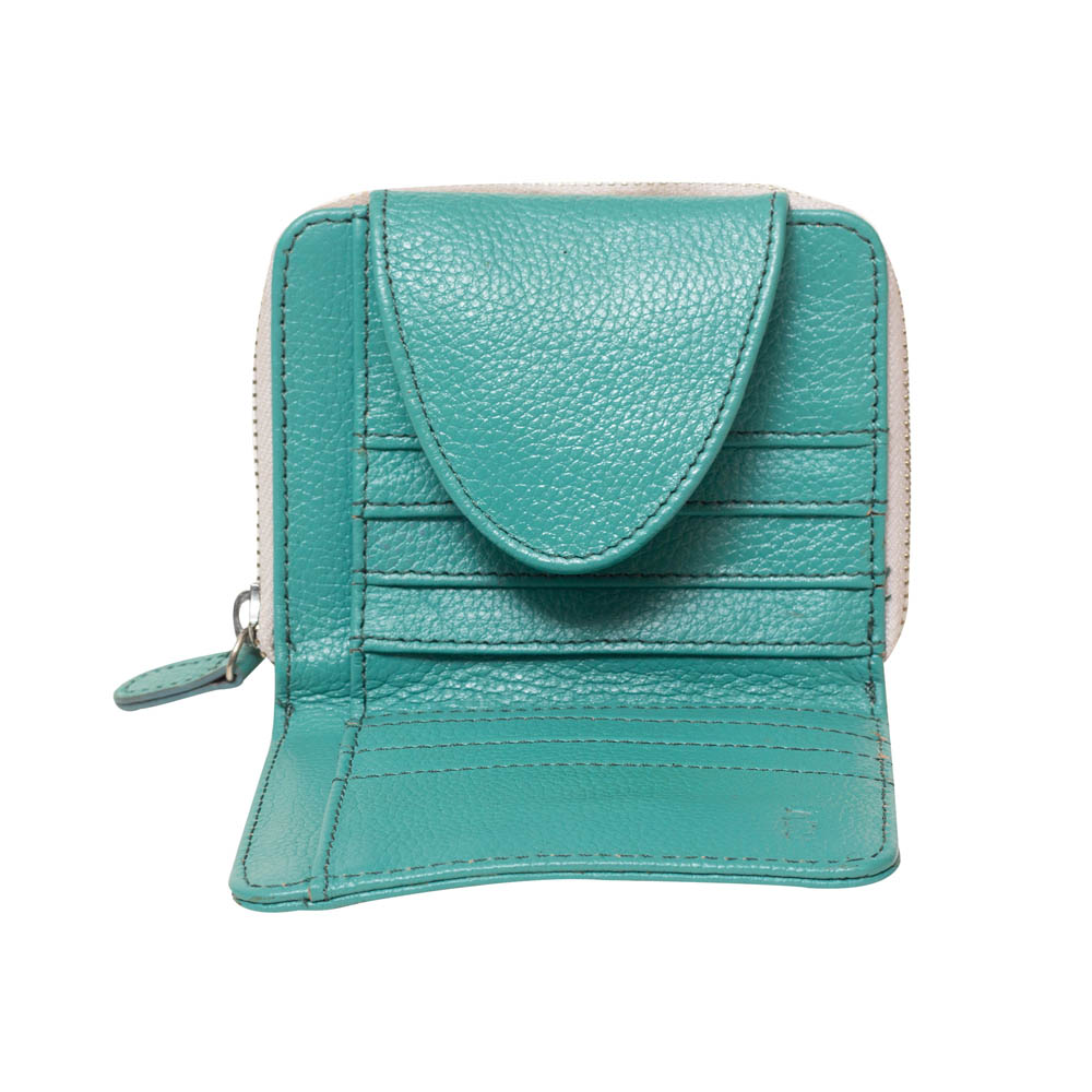 Interior details: 6 pockets for credit cards, 2 large compartments for cash, 2 additional pockets for receipts.