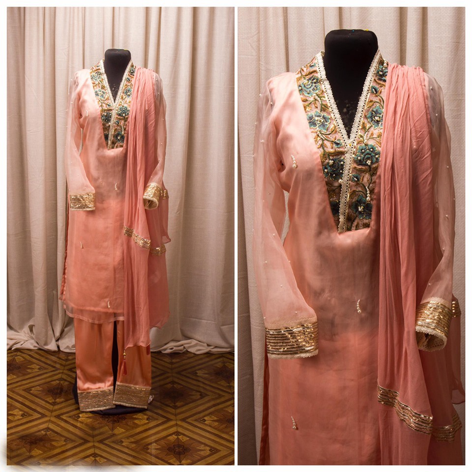 Composition- Muslin kameez,charmeuse silk pants and pure chiffon dupatta.
