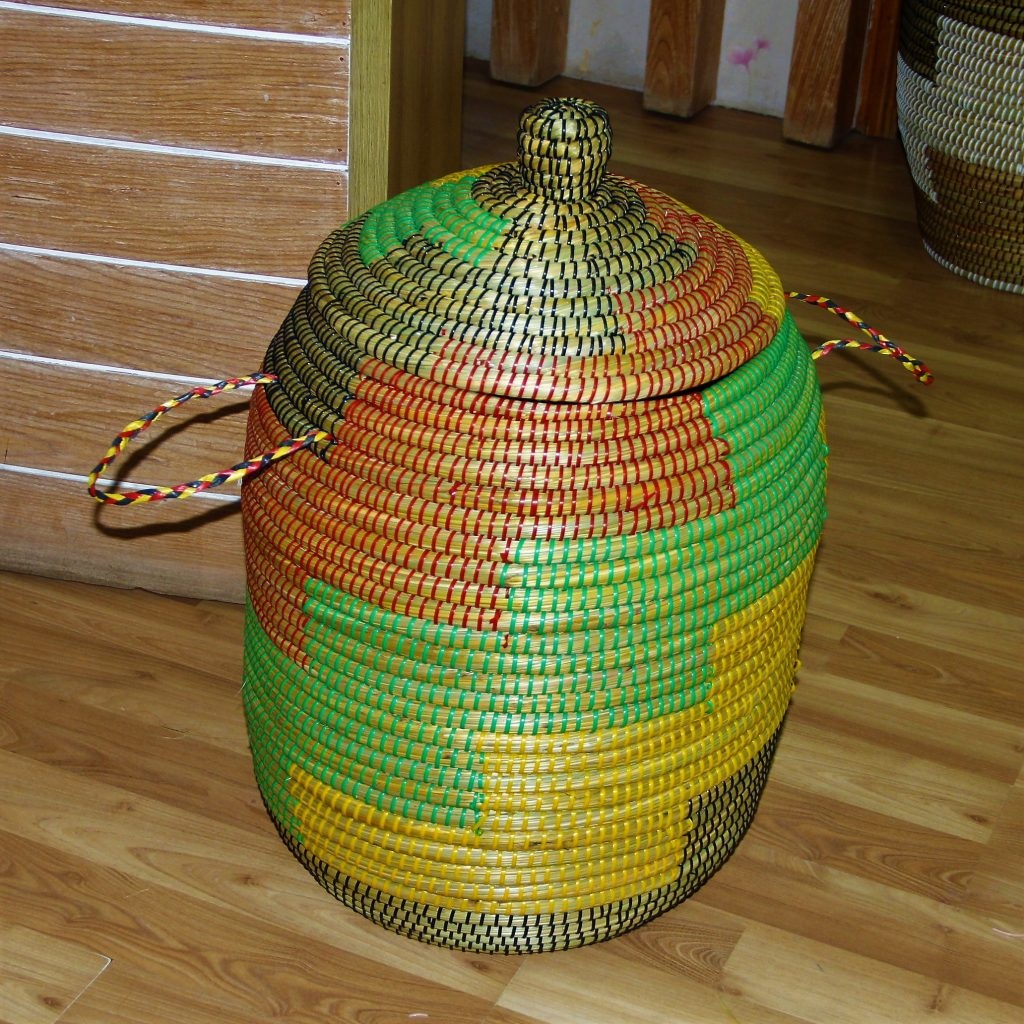 The beautiful basket was inspired by the Senegalese design. It is large, It will brighten up any corner of your house.