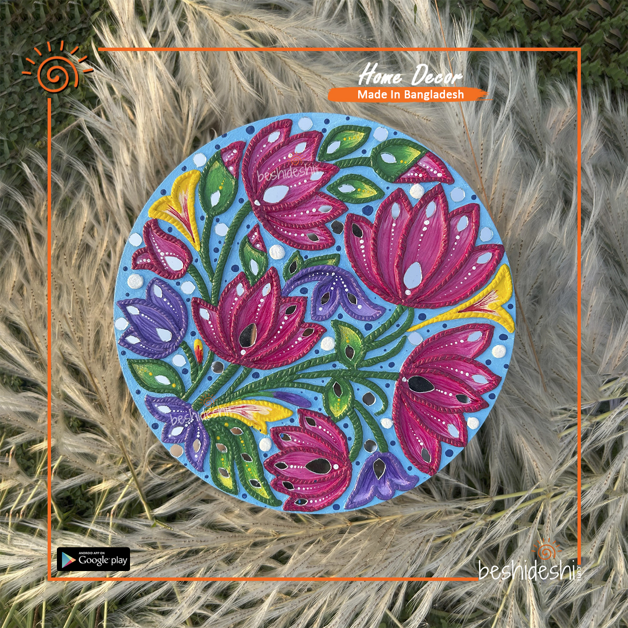 Material: MDF Board, Mouldit Clay, Sparkling Mirrors, Vibrant Acrylic Colors & Strong Craft Glue come Together to Create, Intricate & Radiant Lippan Art.