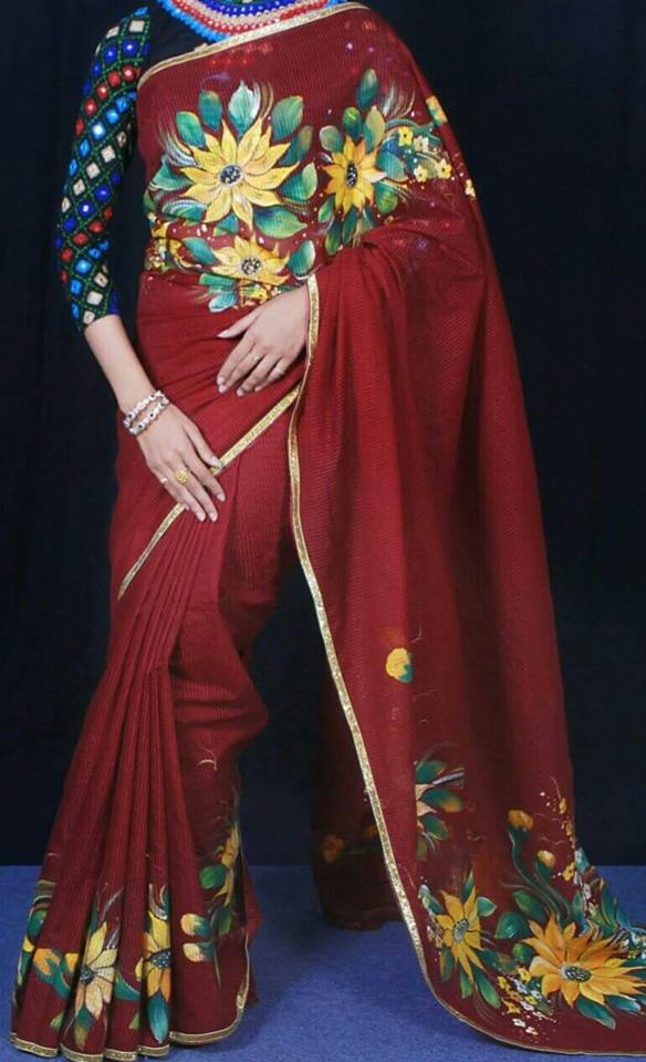 Handpaint silk kota saree.