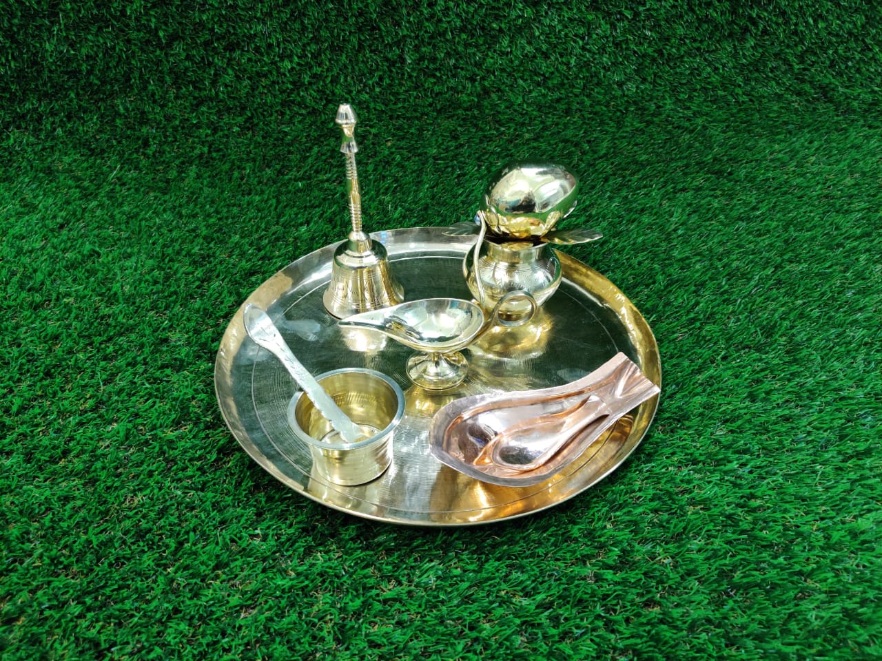 Standard Puja Set (Brass/Pitol/Copper) with Plate