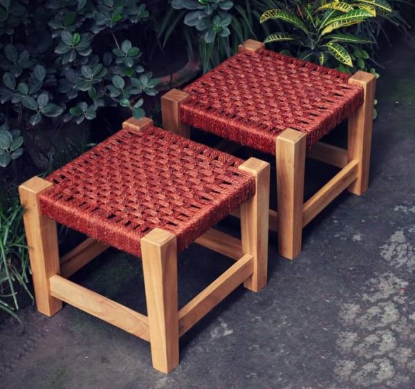 Jute and Wooden Stool