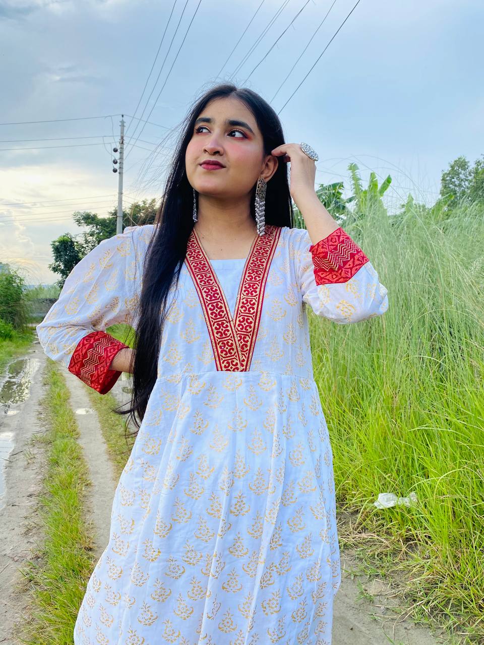 সম্পূর্ণ সেলাইকরা গোল ফ্রক কুর্তি