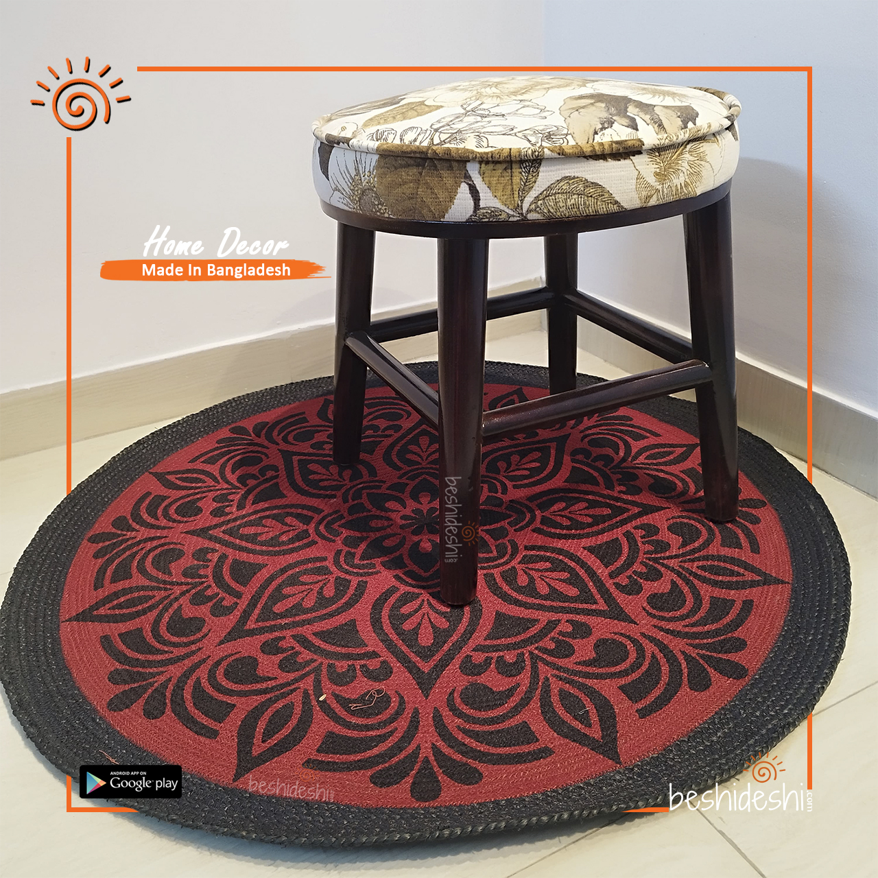 Materials: Mahogany Wood & Board, Velvet Printed Fabric Stool