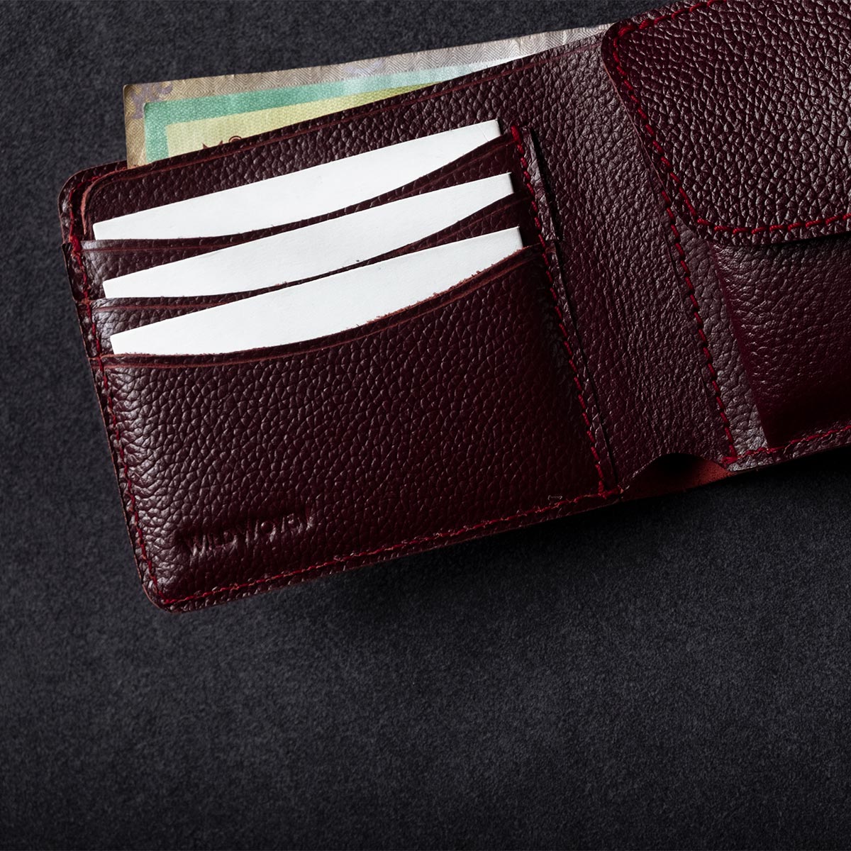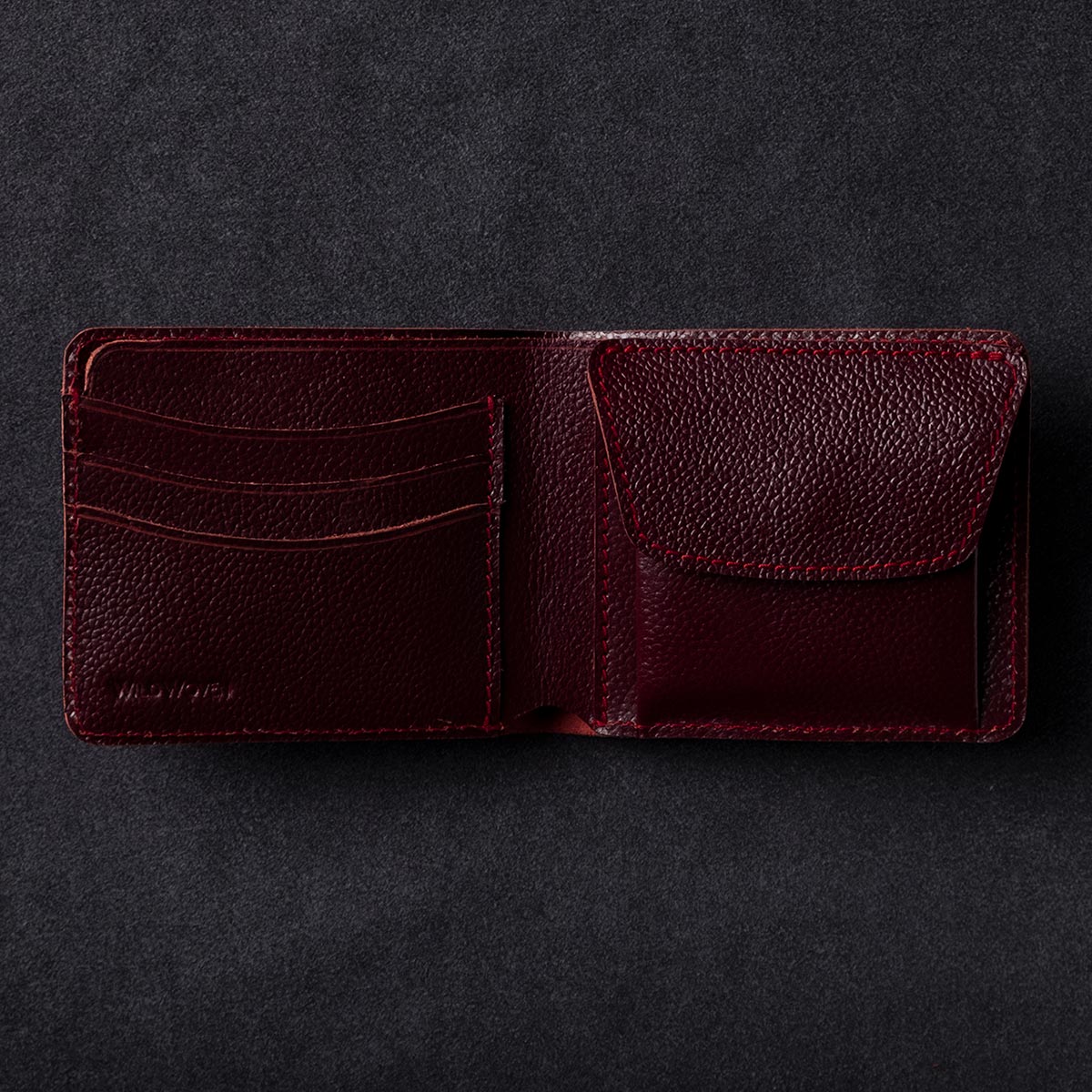 Description: If you prefer to have separate spaces for your notes, coins and cards, this is the best choice for you. This handcrafted functional design features three card pockets and one full-length note pocket. A compartment secured with a snap fastener is ideal for holding loose change while note pockets and card slots provide space for the rest of your essentials.